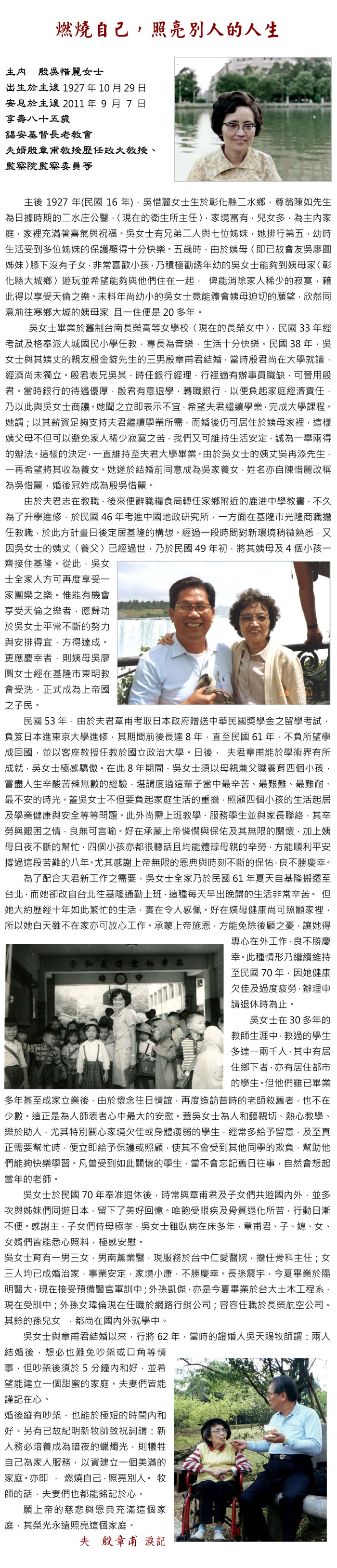 • :: 殷吳惜麗女士